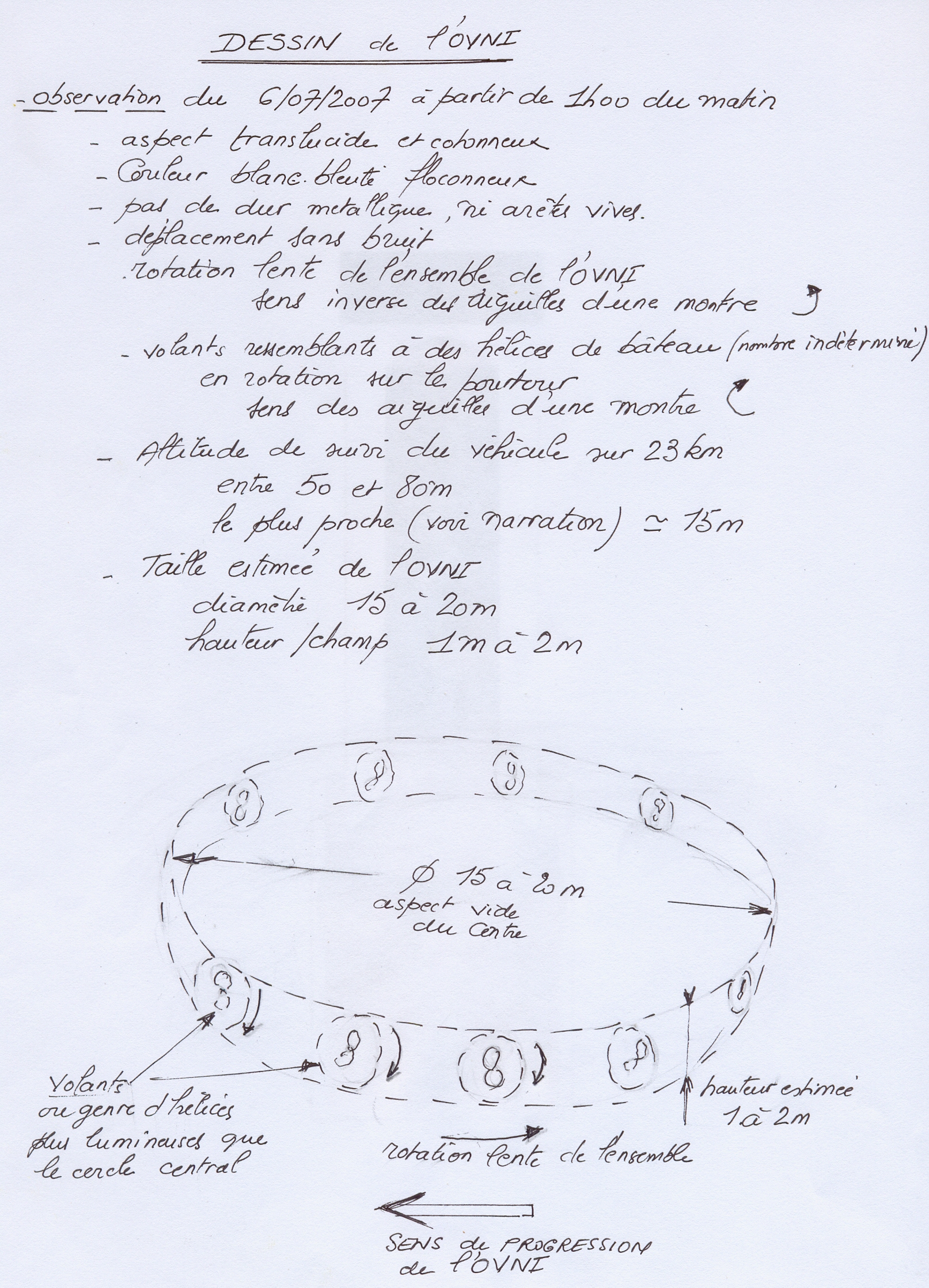 Le 6 juillet 2007 aux environs d'une heure du matin, un automobiliste et sa femme vont être témoins d'un phénomène lumineux vaporeux de couleur blanc-bleuté et de la forme "d'un anneau" ovale, en déplacement silencieux légèrement incliné dans le ciel nuageux. Sur l'extérieur de l'anneau, les témoins voient également plusieurs cercles lumineux. Le phénomène semble suivre le véhicule, ce qui effraye les témoins, entre la sortie de Remiremont (88) et Dinozé (88). Arrivés à leur domicile, les témoins continueront d'observer le phénomène. L'observation discontinue aura duré 35 minutes environ sur un peu plus de vingt kilomètres.