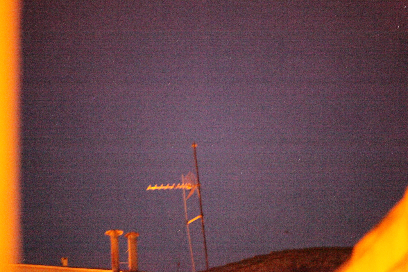 Voir les photos : l'une assez sombre (6730) correspond à peu près à ce que voyait le témoin à l'œil nu, et l'autre (6738), en pose plus longue, révèle l'origine du phénomène.
