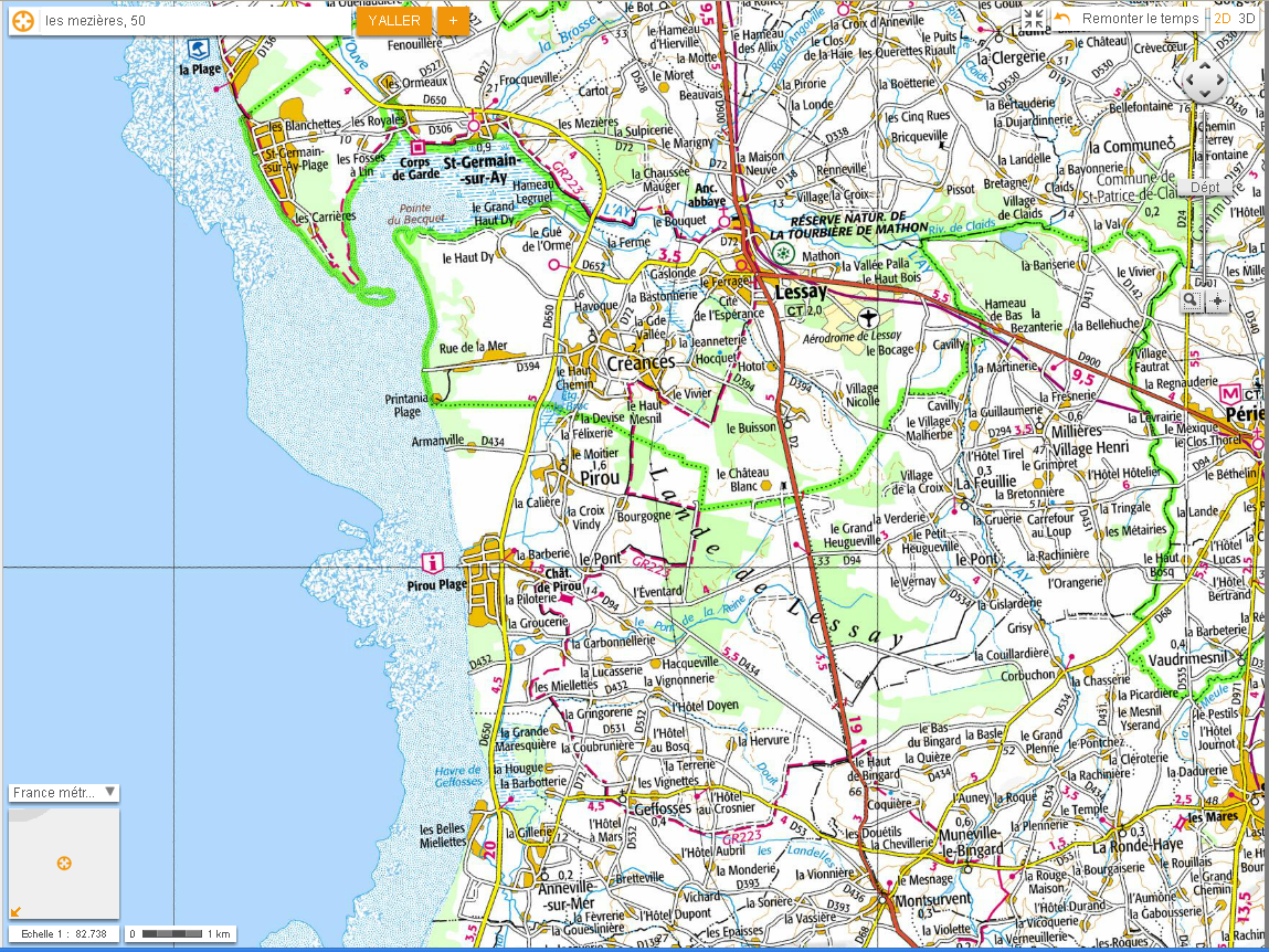 Le 23 septembre 2013 entre 20h10 et 20h25 une automobiliste sur la D650 entre Les Mezières et Saint-Germain-Sur-Ay (plage) est intriguée par deux points brillants dans le ciel : un point en particulier semble suivre une trajectoire rectiligne et s'éloigne à vistesse constante vers le NO. Le témoin identifie parfaitement un avion avec sa trainée de condensation qui traverse son champs de vision. Le témoin s'arrète à deux endroits pour prendre plusieurs photographies du point lumineux.