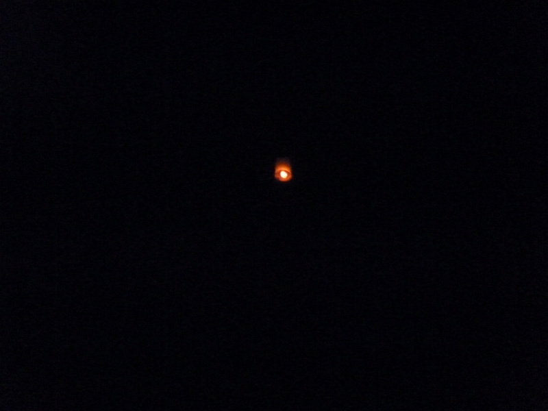 Observation du déplacement E-O et silencieux d'une boule orangé dans le ciel : observation d'une lanterne thailandaise.