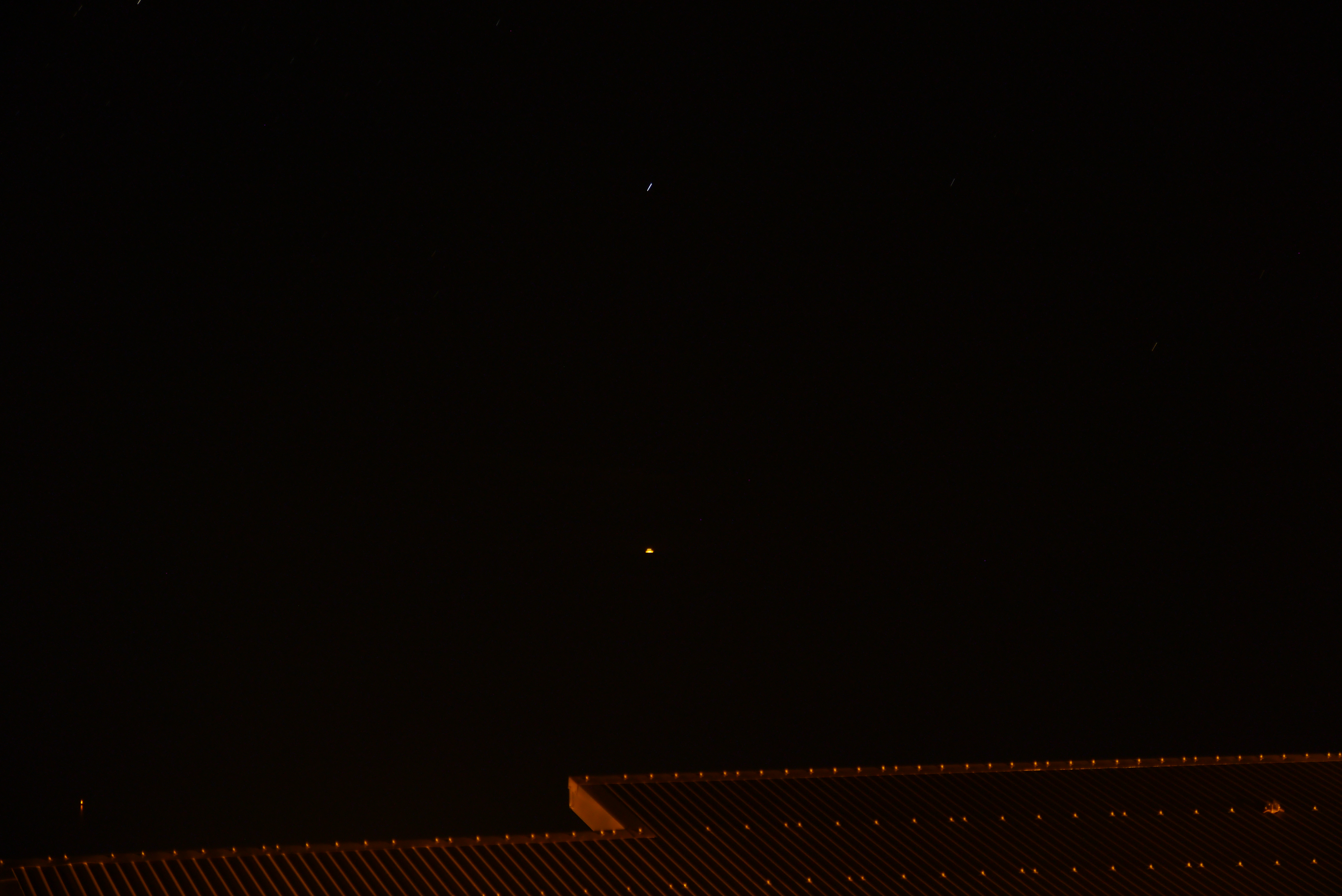 Longue observation d'un objet sombre et d'une lueur orangée sur l'océan : observation très probable d’un bateau.