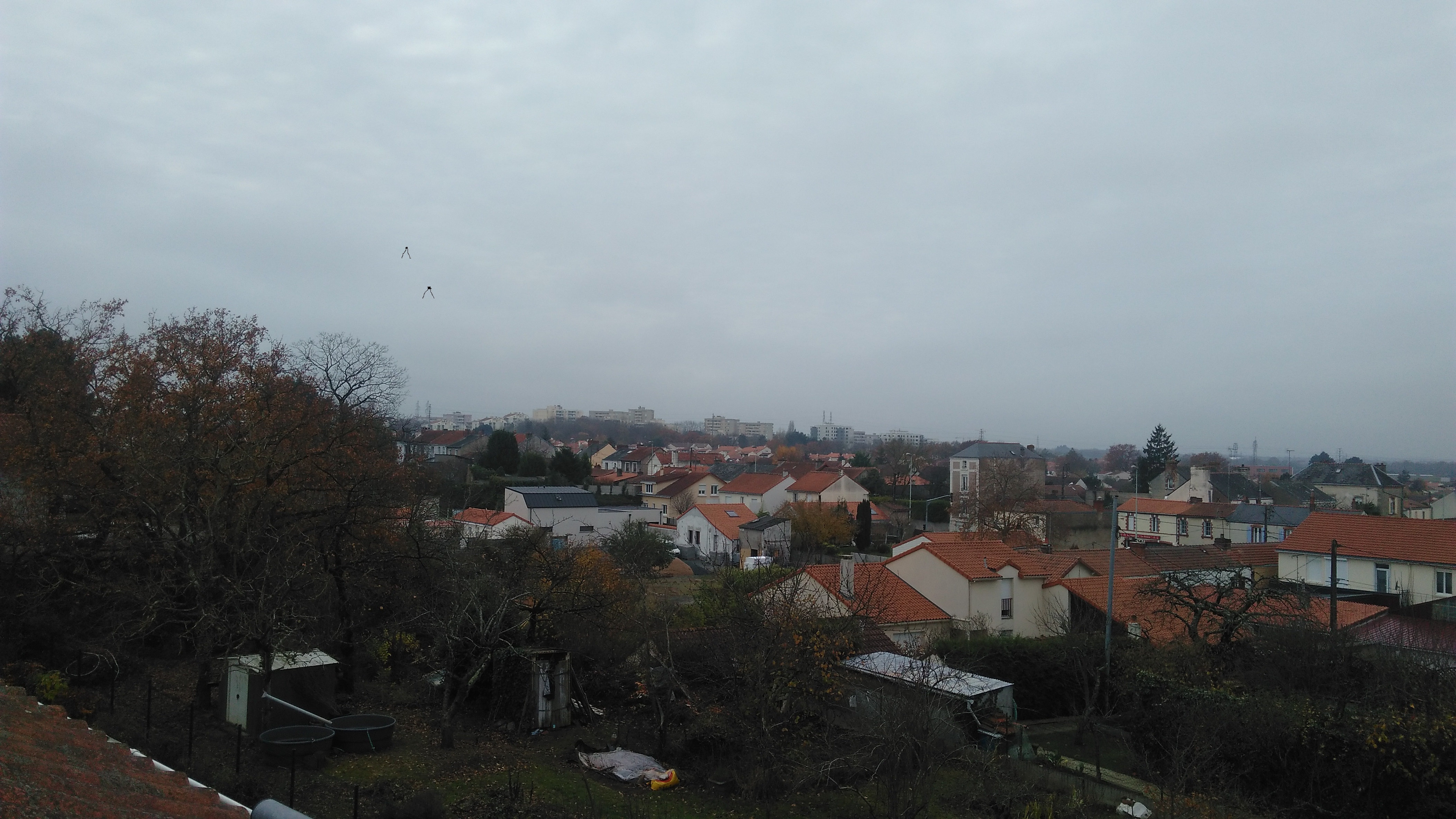2-« … 2 objets invisibles à l’œil nu (apparemment statiques : l’un par rapport à l’autre, mais aussi par rapport aux nombreux nuages environnants) de forme triangulaire et sombres cette fois (je pense cependant qu’il s’agit des mêmes que le 1er, plus éloignés, et avec une orientation différente, c'est à dire non orientés vers le soleil). »